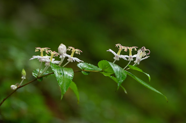 茎を大きく伸ばし、多くの花を付けるヤマジノホトトギスは、